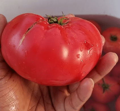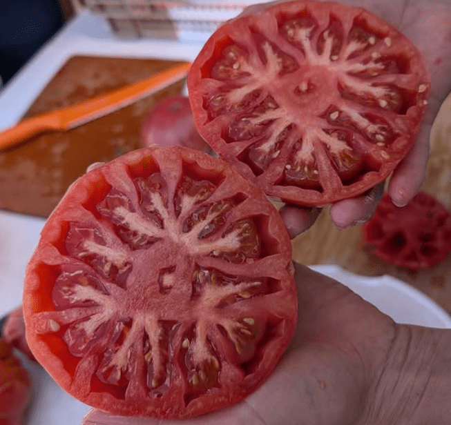 | #1292 TOMATO (O.P.)(ORG.)(HERIT.) Watermelon Beefsteak Tomato The Watermelon Beefsteak is a 100-year-old heirloom tomato, originally from West Virginia and introduced by George Gleckler in 1958. This indeterminate variety produces large, 1-2 lb. pink beefsteak tomatoes with a lightly scalloped shape. Known for its rich, complex, old-time tomato flavor, it offers a deliciously sweet and juicy taste perfect for… INDETERMINATE. ☀ Annual, Height: 4-5′, 2-3′(w) Seeds(25) Plants |