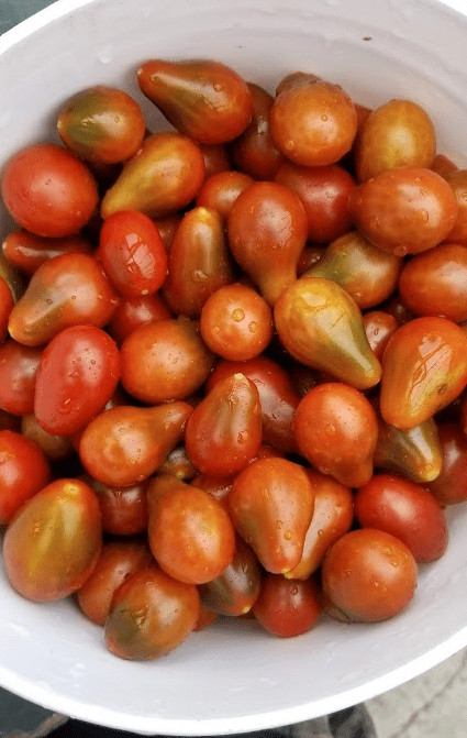 | #1227 TOMATO (O.P.)(ORG.)(HERIT.) Red Fig Tomato Red, pear shaped, cherry tomato. Dries well, whole, like figs, or sliced. Sprawling, large, prolific plants. Italian heirloom from the 1700s. INDETERMINATE. ☀ Annual, Height: 6-8′, 2-3′(w) Seeds(25) |