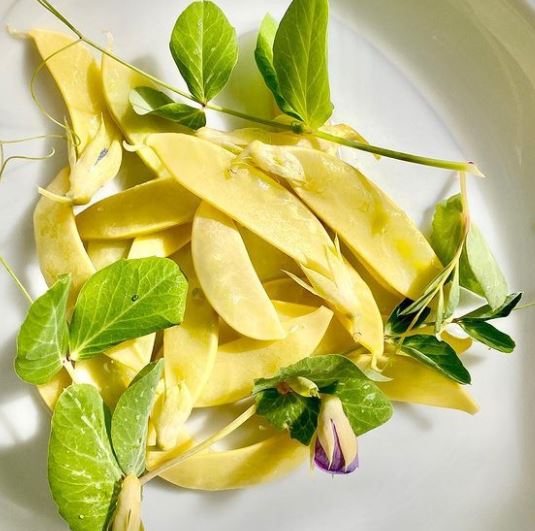 | #0061 BEAN–POLE (O.P.)(ORG.)(HERIT.) Gold Marie Pole Bean Heirloom. Bright and glowing yellow coloured beans. Vigorous vine. Flattened pods are beany flavour and ideal for picking when 6” long. Highly productive. ☀ Annual, Height: 6-8′, 12″(w) Seeds(25) |