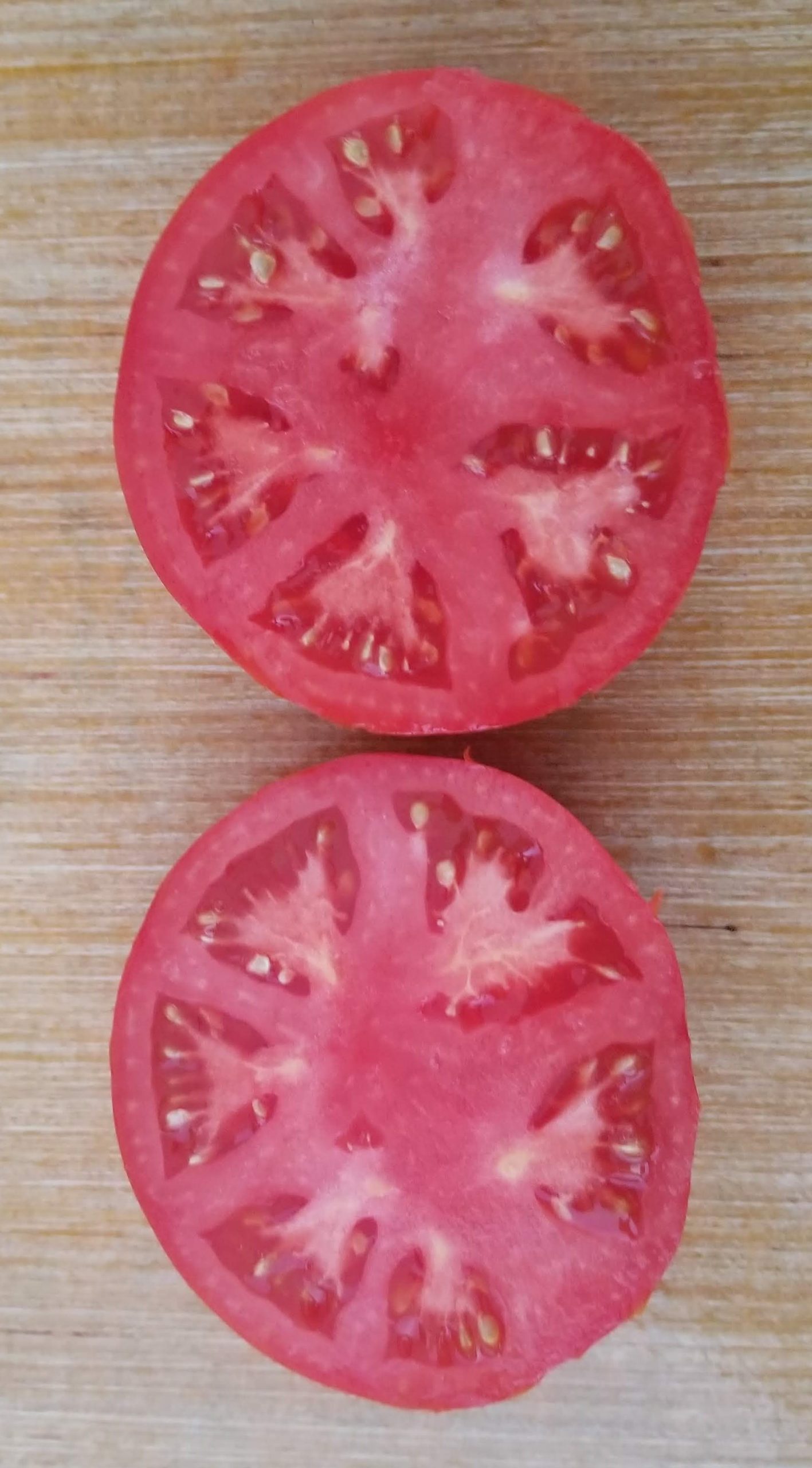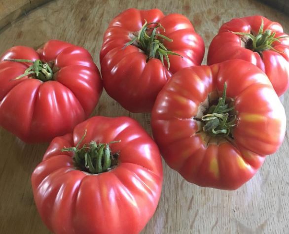 | #1228 TOMATO (O.P.)(ORG.)(HERIT.) Red Marmande Tomato Early. Light red, flattened, round, medium size tomato with ribbed shoulders. Succulent, light, tart flesh. From Marmande, France in the 1800s. INDETERMINATE. ☀ Annual, Height: 3-5′, 2-3′(w) Seeds(25) |