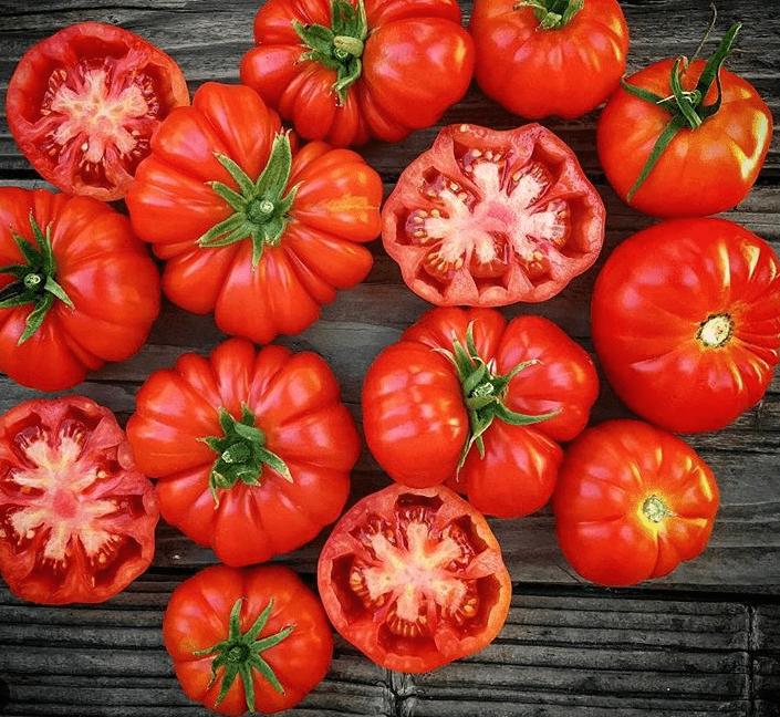 | #1231 TOMATO (O.P.)(ORG.)(HERIT.) Red Rosso Sicilian Tomato Highly ribbed and popular Italian tomato from Sicily. Bright red in color with firm flesh and thin skin, perfect for making tomato sauce. INDETERMINATE. ☀ Annual, Height: 4-6′, 2-3′(w) Seeds(25) |
