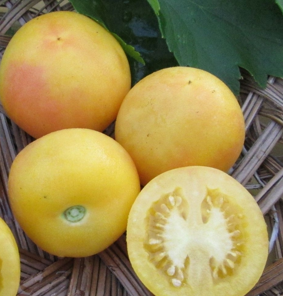 | #1290 TOMATO (O.P.)(ORG.)(HERIT.) Wapsipicon Peach Tomato The Wapsipinicon Peach (also known as Yellow Peach or White Peach) is a heirloom variety originating in 1890 from Elbert S. Carman and later revived by Dennis Schlicht. This indeterminate, regular-leaf plant produces abundant, 1.5-2″ fuzzy, pale-yellow tomatoes with a hint of pink. Known for their sweet, juicy, well-balanced flavor, they are resist… INDETERMINATE. ☀ Annual, Height: 4-5′, 2-3′(w) Seeds(25) Plants |