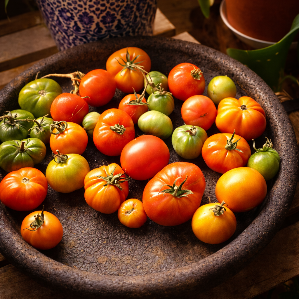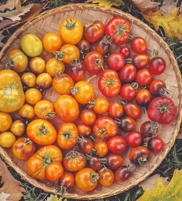 | #1278 TOMATO (O.P.)(ORG.)(HERIT.) Tomato Mix A mix of Gaia’s Tomato Varieties. A surprise for your garden! Discover a rainbow of colors and tastes like never before! INDETERMINATE. ☀ Annual, Height: 4-6′, 2-3′(w) Seeds(25) |