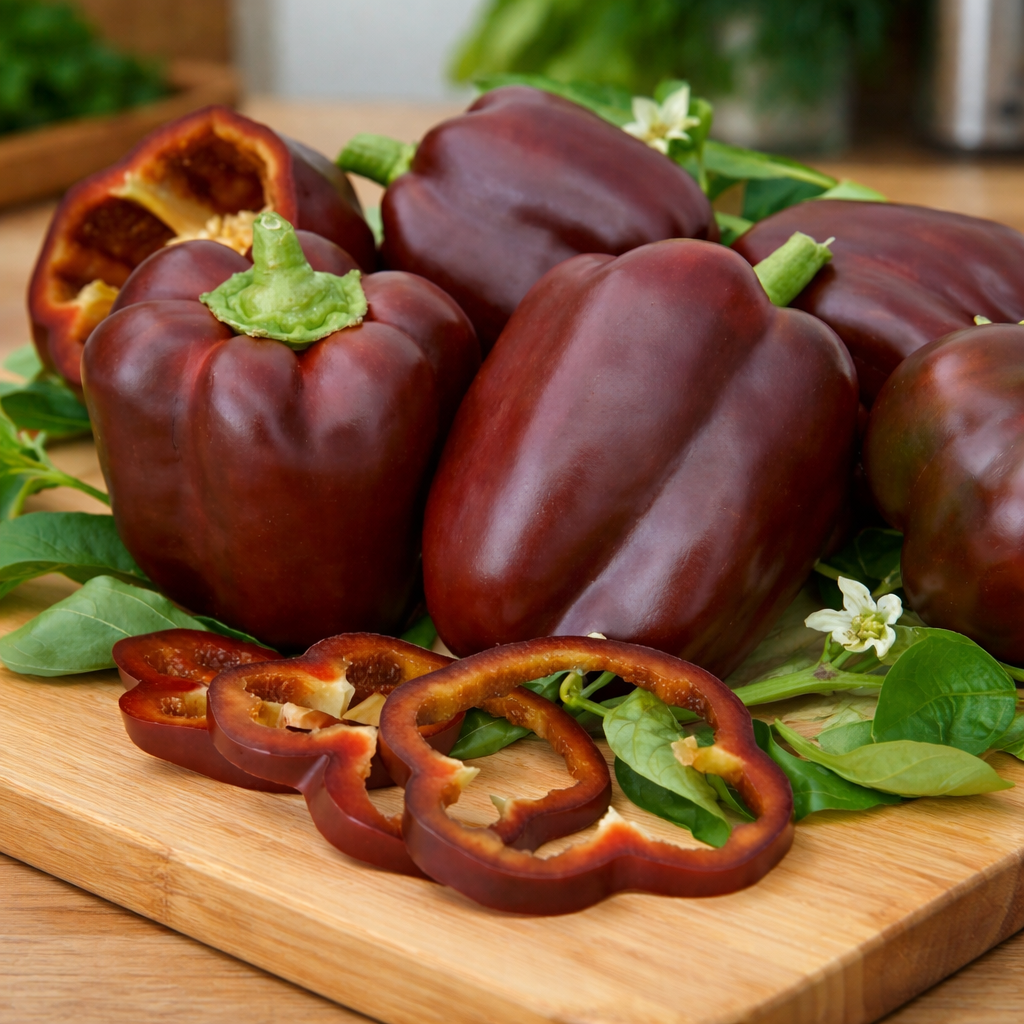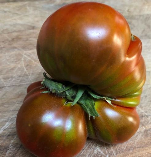 | #1219 TOMATO (O.P.)(ORG.)(HERIT.) Purple Calabash Tomato An outstanding variety with highly ruffled and lobed characteristics. 2” tomatoes grow abundantly on disease-free and drought-tolerant plants. Excellent in sauces or salads. This regular-leaf tomato is possibly the most ‘purple’ among its counterparts. The fruit has a chocolate-brown to deep-purple color, featuring intensely rich and wine-like fla… INDETERMINATE. ☀ Annual, Height: 3-5′, 2-3′(w) Seeds(25) Plants |