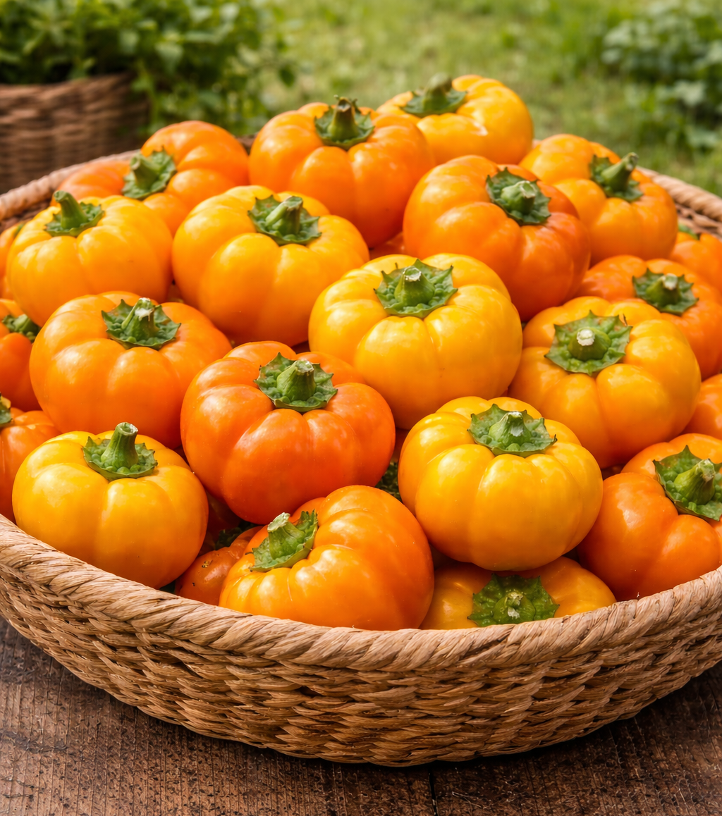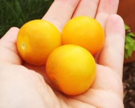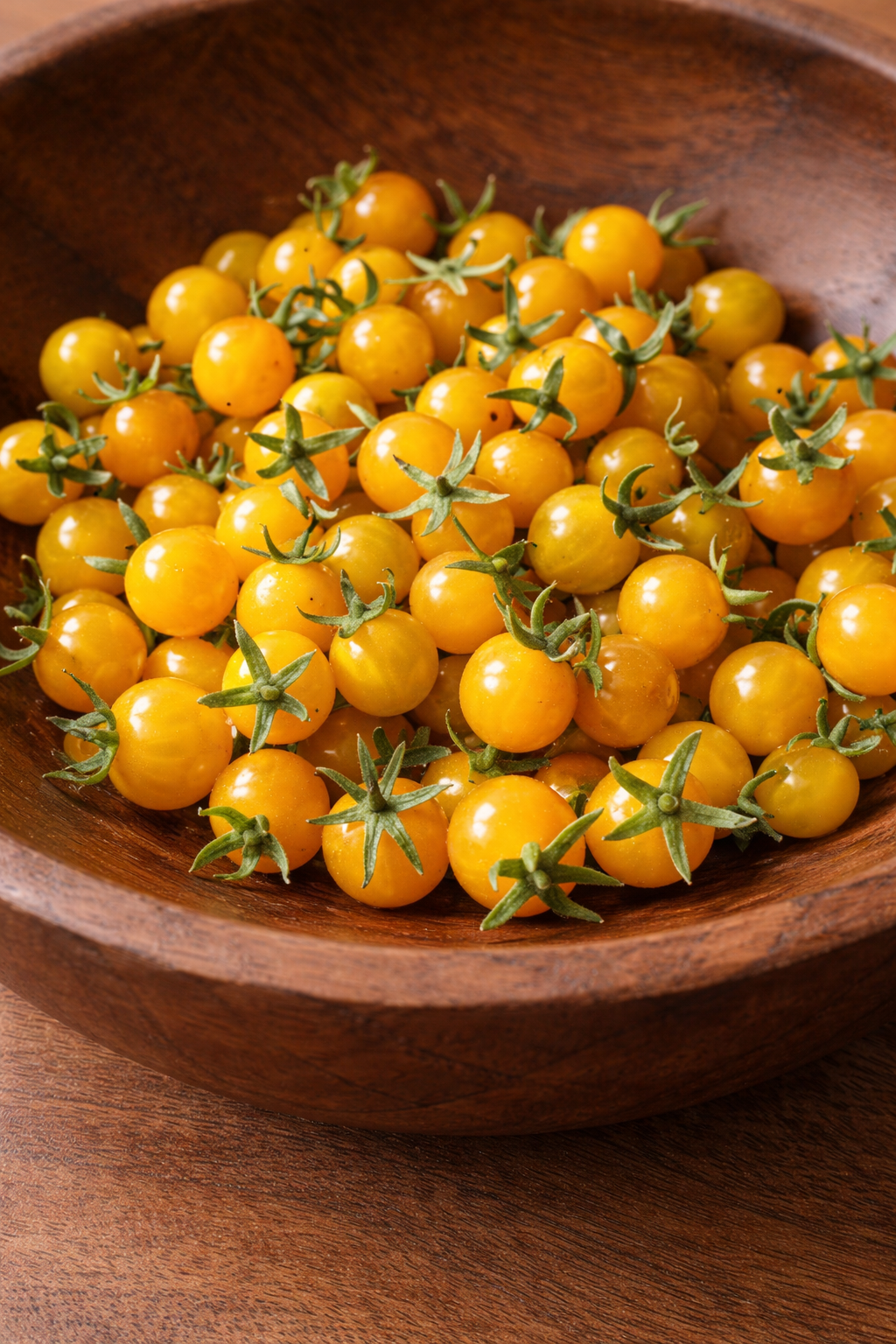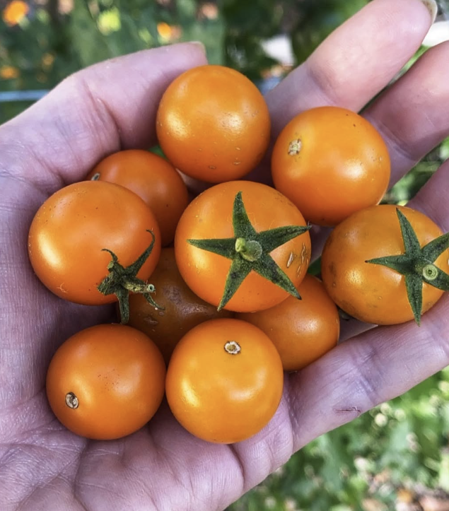 | #1268 TOMATO (O.P.)(ORG.)(HERIT.) Sweet Orange Tomato 1” orange color cherry tomato that is very sweet-tasting and has excellent crack-resistance. INDETERMINATE. ☀ Annual, Height: 3-5′, 24-36″(w) Seeds(25) Plants |