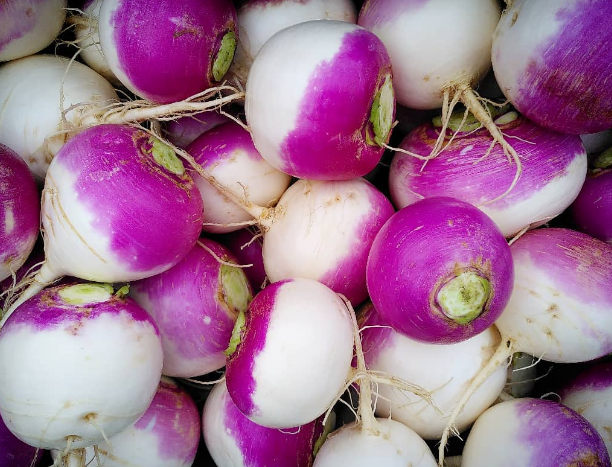 | #1308 TURNIP (RAPHANUS SATIVUS) (O.P.)(ORG.)(HERIT.) Purple Top White Globe Turnip Heirloom variety dating back to the 1800s. Excellent storage quality. Tastes best when harvested at 3-4”. Consistent quality even if they become big. Finely fibrous white-fleshed, mild-tasting. ⛅ Biennial, Height: 12″, 6″(w), -11°C Seeds(150) |