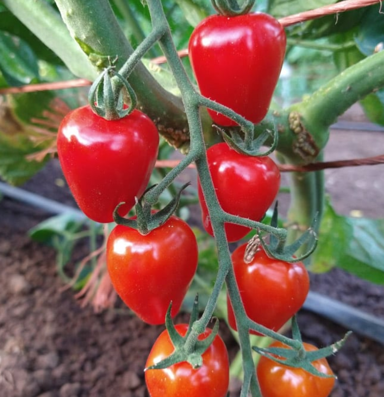 | #1272 TOMATO (O.P.)(ORG.)(HERIT.) Ten Fingers of Naples Tomato Fitting of its name, this Italian heirloom from Naples bears finger-like trusses of medium-sized paste tomatoes Incredible yields of 4 oz., 4-5’ fruits with firm meaty flesh and a rich, savory flavor with little seed; ideal for purée, salsa, sauces, and canning INDETERMINATE. ☀ Annual, Height: 5-7′, 2-3′(w) Seeds(25) Plants |
