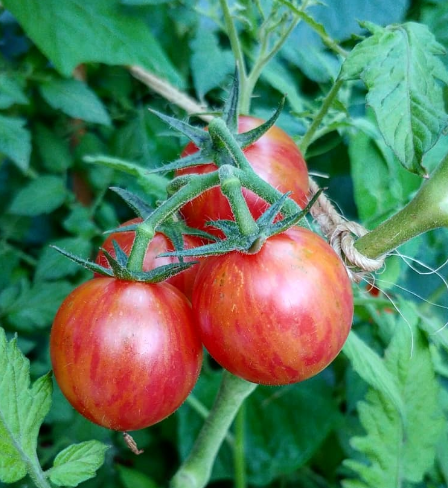 | #1233 TOMATO (O.P.)(ORG.)(HERIT.) Red Zebra Tomato The “Red Zebra” tomato is a natural cross between Green Zebra and an unknown parent, developed by Jeff Dawson. It produces abundant, 2-3″ round red fruits with light yellow striping. Known for its sweet flavor with a tangy, slightly acidic finish, it makes a great addition to salads. This disease-resistant variety offers both beauty and flavor. INDETERMINATE. ☀ Annual, Height: 5-8′, 2-3′(w) Seeds(25) Plants |