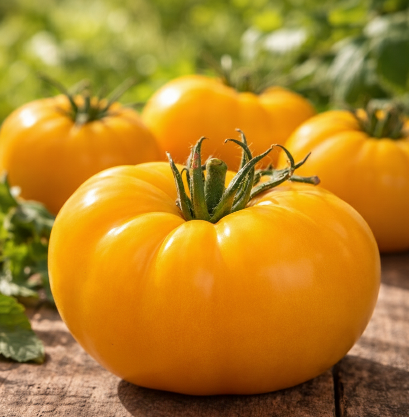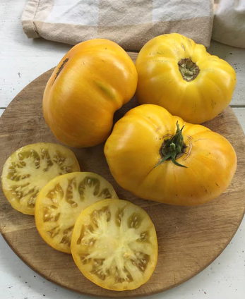 | #1303 TOMATO (NEW)(O.P.)(ORG.)(HERIT.) Yellow Stuffer Tomato This indeterminate tomato variety produces medium-sized, yellow fruits with a sweet, mild flavor. It’s known for its unique internal structure, making it ideal for stuffing. INDETERMINATE. ☀ Annual, Height: 4-6′, 2-3′(w) Seeds(25) Plants |