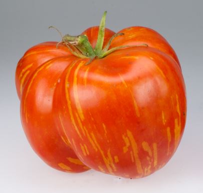 | #1259 TOMATO (O.P.)(ORG.)(HERIT.) Striped Cavern Tomato This unique tomato produces 8 oz, blocky, pepper-shaped fruits with red and yellow stripes. The partially hollow, lobed structure makes it perfect for stuffing, and it contains few seeds. The delicate skin is ideal for cooking, and the variety is a prolific producer. Indeterminate with good keeping ability. INDETERMINATE. ☀ Annual, Height: 4-5′, 2-3′(w) Seeds(25) Plants |