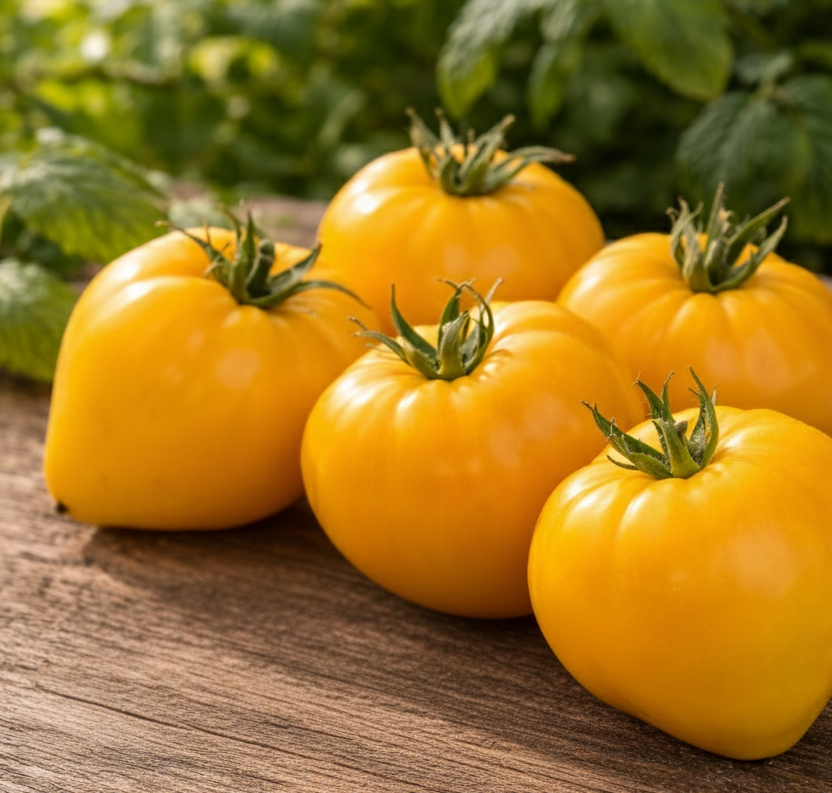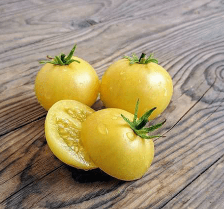 | #1304 TOMATO (O.P.)(ORG.) Yellow Tomato Mix A mix of tomato type of slicer, cherry, beefsteak and grape of yellow colour. INDETERMINATE. ☀ Annual, Height: 3-5′, 2-3′(w) Seeds(25) Plants |