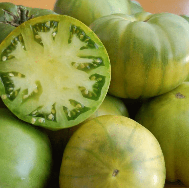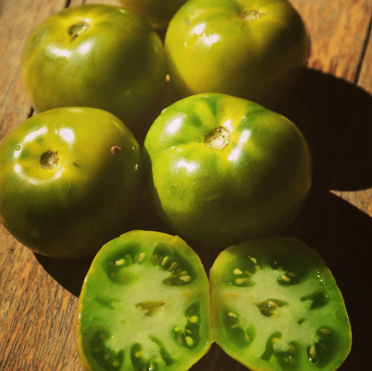 | #1284 TOMATO (O.P.)(ORG.)(HERIT.) Vernissage Green Tomato Striking green stripes loaded with sublime sweetness and taste. Great for salad and salsas. Quite a productive plant that bears all season. INDETERMINATE. ☀ Annual, Height: 3-5′, 18-24″(w) Seeds(25) Plants |