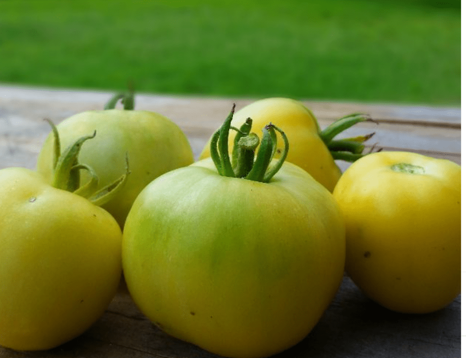 | #1294 TOMATO (O.P.)(HERIT.) White Beauty Tomato 1920’s. Large, heavy, extra smooth, creamy-white 150-200g (6-8oz) fruit with a mild but very sweet taste having an acid, citrus balance. Makes an interesting white sauce. Even does well in partial shade. Performs in hot climates too. Prolific in mid season. Indeterminate. 75-85 days. INDETERMINATE. ☀ Annual, Height: 3-5′, 2-3′(w) Seeds(25) Plants |