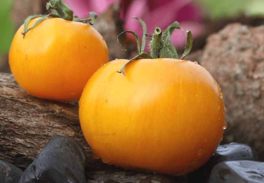 | #1288 TOMATO (O.P.)(ORG.) Vilmorin Peche Tomato Midseason. Small, 2″, peach coloured tomato with slightly fuzzy skin. Fruity, juicy. Large seed pockets. French heirloom from the 1800s. INDETERMINATE. ☀ Annual, Height: 4-6′, 2-3′(w) Seeds(25) Plants |