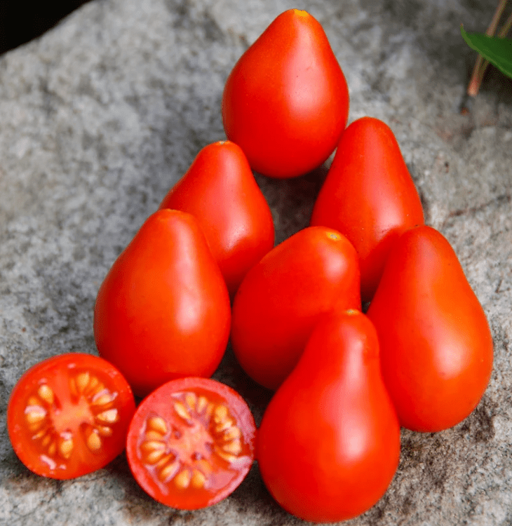 | #1229 TOMATO (O.P.)(ORG.)(HERIT.) Red Pear Tomato A very old mid-season heirloom from the 1700s. Scarlet red pear-shaped fruits in mid-season. Full, juicy flavor with slight acid make these great for snacking and super in salads. Prolific yields of hundreds of fruits. Contain very few seeds. INDETERMINATE. ☀ Annual, Height: 6-8′, 2-3′(w) Seeds(25) Plants |
