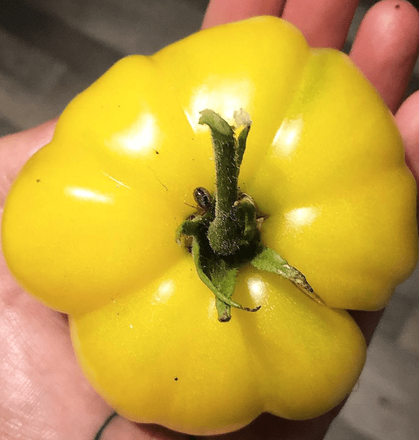 | #1302 TOMATO (O.P.)(ORG.) Yellow Radiance Tomato This big & bright yellow beefsteak was developed by Californian seed breeding afficionado Brad Gates. It easily charms with its vibrant stripes, its old-fashioned rish citrusy sweet taste, and well-appreciated meaty flesh, making it a popular choice at farmer’s markets. Grows abundant amounts of fruits weighing up to 1 lb. 75 days. Photo credit : A… INDETERMINATE. ☀ Annual, Height: 4-6′, 2-3′(w) Seeds(25) Plants |