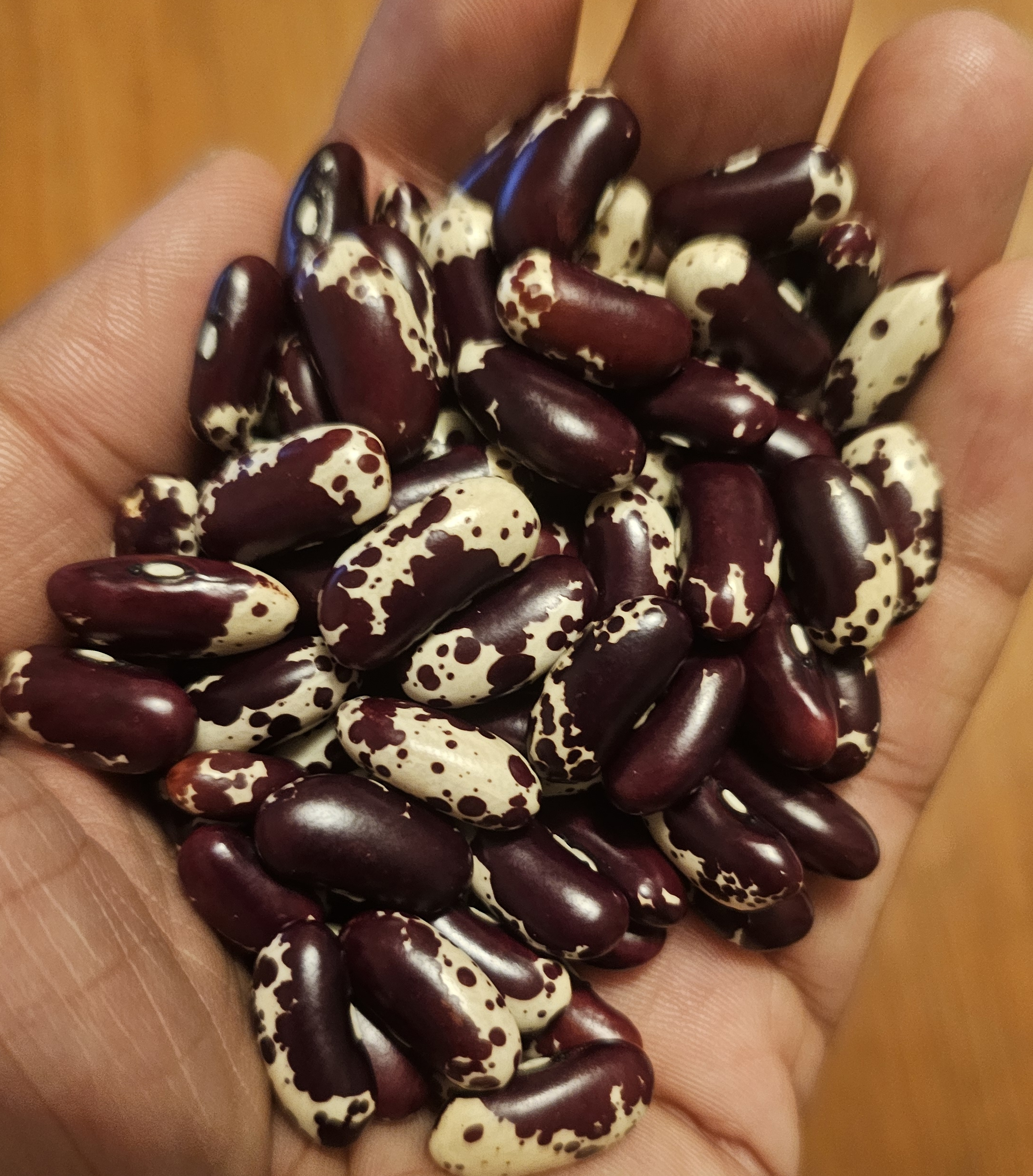 | #0057 BEAN–POLE (O.P.)(ORG.)(HERIT.) Cherokee Cornfield Pole Bean Heirloom, Earthtone colored beans. High yielding when trellis. Grows well together, if separated by colors of the seeds, they will barely flower. Traditionally used as a shelly bean – boil the pods as one would with edamame, then pop the small beans out of their pods. ☀ Annual, Height: 6-8′, 12-18″(w) Seeds(25) |