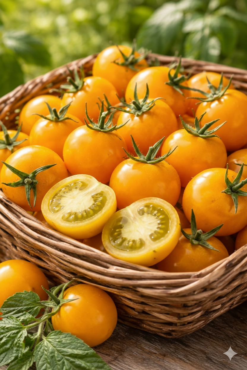 | #1263 TOMATO (NEW)(F1)(ORG.) Sun Gold F1 Tomato Sun Gold F1 Tomato produces an abundant yield of intensely sweet, golden-orange cherry tomatoes. Its fruit is known for its exceptional flavor and is a popular choice for fresh eating. INDETERMINATE. ☀ Annual, Height: 4-6′, 2-3′(w) Seeds(10) |