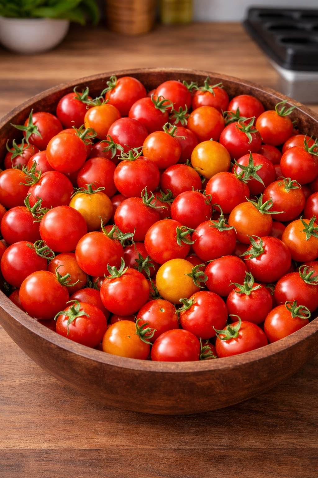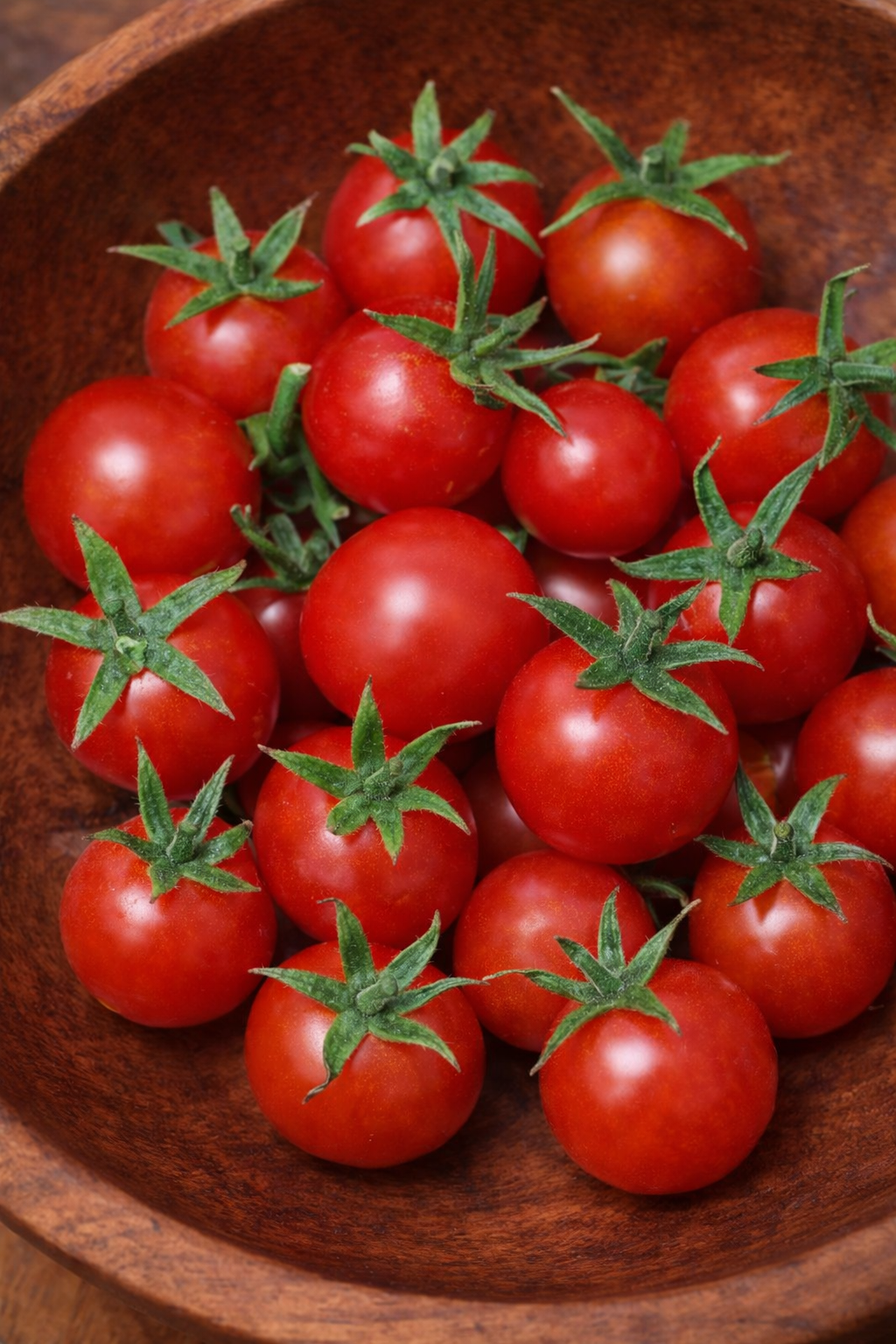 | #1262 TOMATO (O.P.)(ORG.)(HERIT.) Sugar Cherry Tomato Intensively sweet and flavorful. A tiny red cherry tomato that gets up to 1” in size. INDETERMINATE. ☀ Annual, Height: 6-8′, 24-36″(w) Seeds(25) Plants |