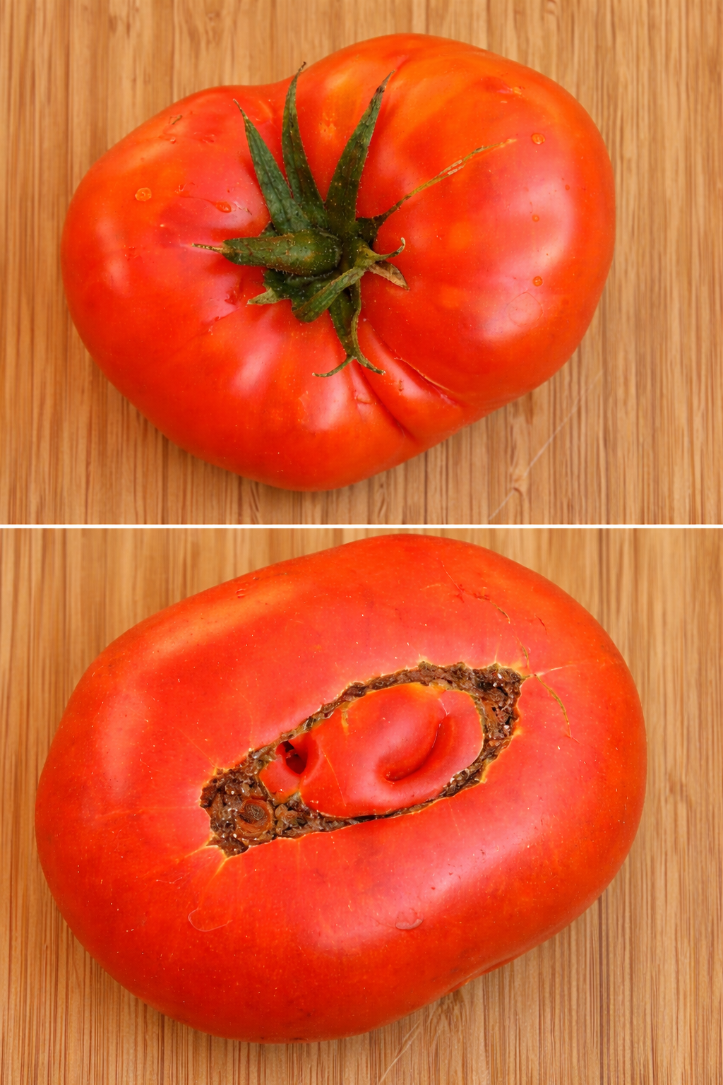 | #1273 TOMATO (O.P.)(ORG.)(HERIT.) Teton De Venus Tomato A Navajo heirloom variety that is heart-shaped. Grows in pairs and has small nipples. Very meaty flesh and the taste are flavorful. INDETERMINATE. ☀ Annual, Height: 4-6′, 24-36″(w) Seeds(25) Plants |