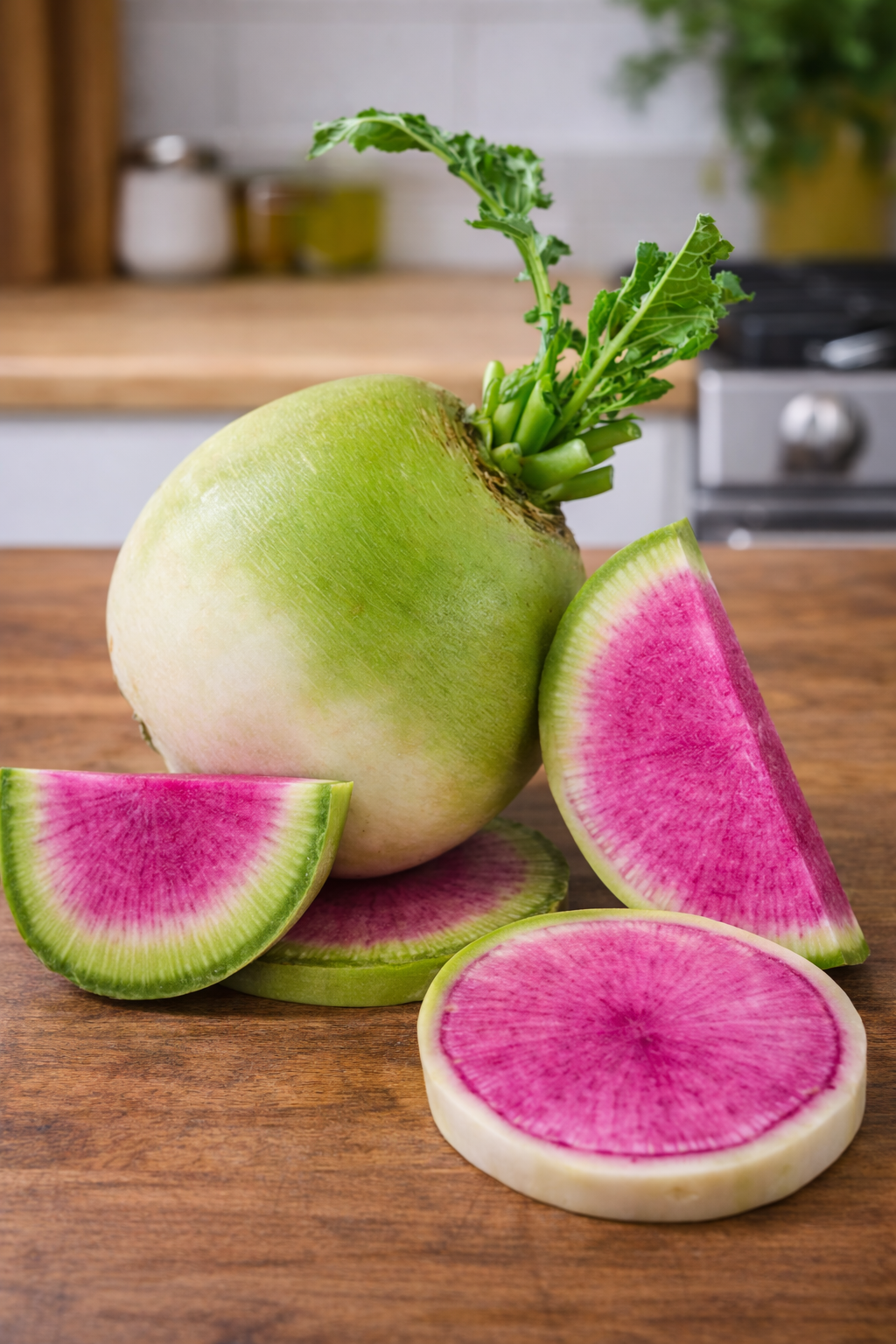 | #1306 TURNIP (F1) Hakurei F1 Turnips Hakurei turnips are a flavorful white salad variety with smooth, flat-round roots that mature quickly, just after radishes. Known for their sweet, fruity taste and tender texture, they are perfect raw or lightly cooked. The dark green tops are also edible. These turnips thrive in cool, well-drained soil, and frequent planting ensures a continuous h… ⛅ Biennial, Height: 12-18″, 6-10″(w), -7°C Seeds(50) |