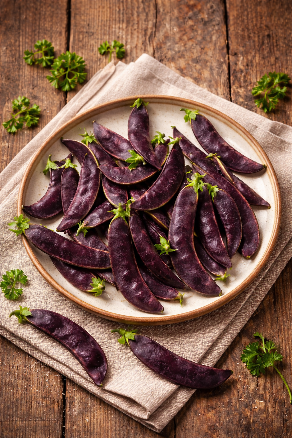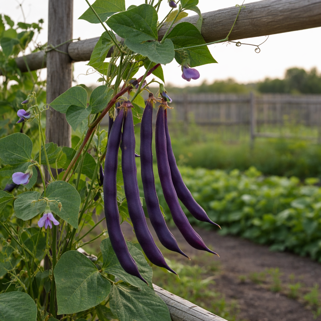 | #0066 BEAN–POLE (NEW)(O.P.)(HERIT.) Purple Podded Pole Bean Purple Podded Pole Bean produces attractive purple pods that turn green when cooked. It is a vigorous climbing vine. ☀ Annual, Height: 6-8′, 6-12″(w) Seeds(25) |