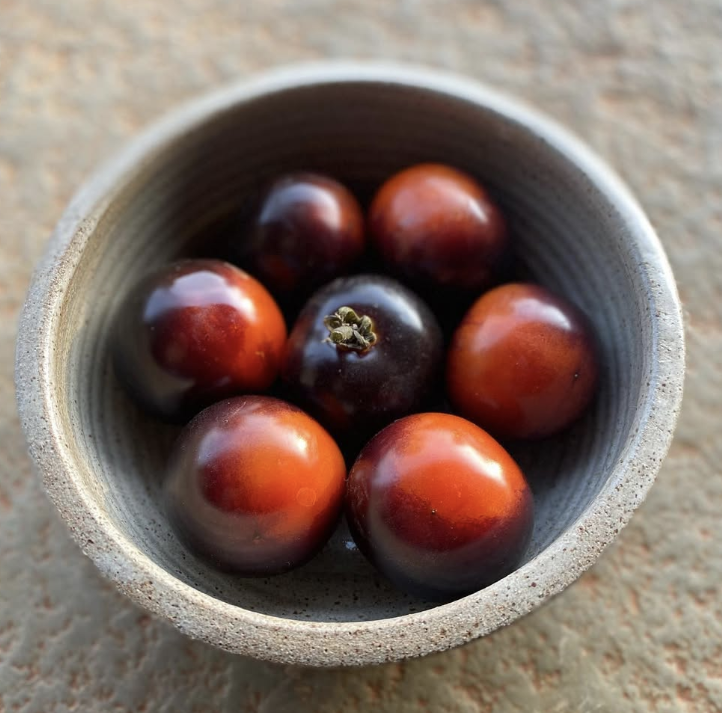 | #1289 TOMATO (O.P.)(ORG.)(HERIT.) Violet Jasper Tomato Also known as Tzi Bi U, these rare Chinese heirloom cherry tomatoes resemble jewels with their 1-3 oz green-striped purplish red flesh, presenting an enchanting opalescence as they ripen. Their sweet, tart and smooth taste as well as their very high yields make them a great choice for market gardeners. Up to 6′ high with sprawling vines that requir… INDETERMINATE. ☀ Annual, Height: 4-6′, 2-3′(w) Seeds(25) Plants |